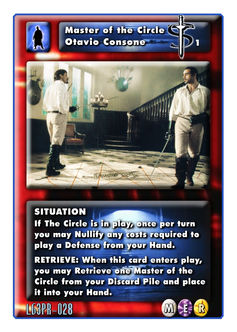 Otavio Consone was born a Spanish noble in 1442. He was a court favorite until he lost to a cheat in a duel of honor in 1481, and revived as an Immortal. Otavio's mentor in his new life was the Queen's lover, the legendary Immortal, Juan Sánchez Villa-Lobos Ramírez, who taught him what he was and the rules of the game. Like his teacher, Otavio became an excellent swordsman and mastered The Mysterious Circle, a special sword art. Otavio was also an excellent Flamenco dancer.