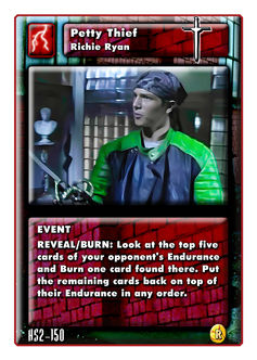 Richie Ryan has two Personas in Highlander the card 2nd Edition. His first persona allows him to use cards from other immortals giving you a ton of flexibility when constructing decks. His second persona is a Burn based theme, which pairs nicely with the text on many of his in game cards. He is one of the only immortals in the game to have two hilts for two different swords (the rapier and the Swiss longsword.)